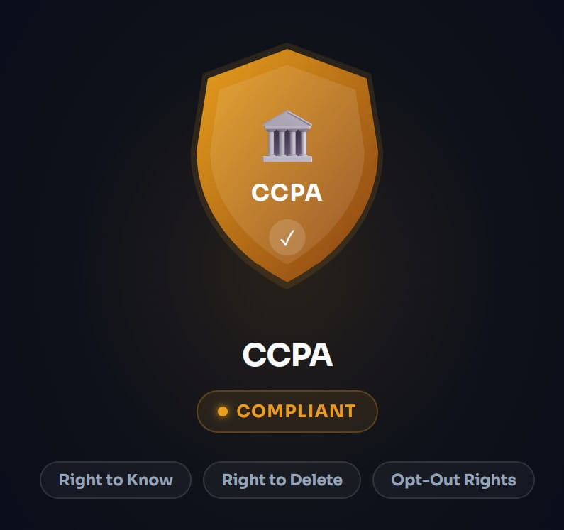 Full compliance with California Consumer Privacy Act. Transparent data practices and user rights respected.