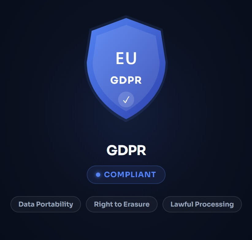 Full compliance with EU General Data Protection Regulation. Data processing agreements available. Right to erasure, data portability, and all GDPR requirements met.